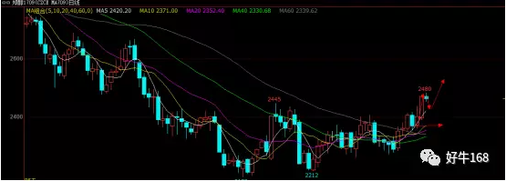周四甲醇主力1709合约进一步收涨,涨幅达2.88%。昨日晚间期价开盘于2469,收于2461元/吨。从日线级别来看甲醇,甲醇昨日的上涨一举突破5月22日的高点,那么今日的做法笔者比较偏向于回撤五日均线附近再度布局多单,若是价位一直在高位震荡,当然震荡区间要在2445上方,也就是5月22日的最高点以上,突破昨日高点之后也能跟进一次多单。综上所述早间建议在2450附近布局多单,止盈2480,止损2440;日内建议在2420附近布局多单,止盈2480,止损2400。
