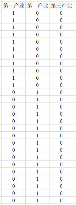 我用Stata做的一个probit模型,用的是江苏省统计年鉴的数据。现在需要将各部门按第一产业、第二产业、第三产业分类,类似于这样