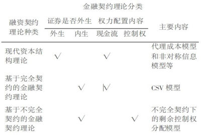 (4)更为重要的是,完全契约融资理论以完全契约理论为基础,即契约当事人在缔结契约时能够完全预期到契约期内可能发生的所有状态,并将所有状态进行特定化,但实际上契约可能是非完全的,因此以aghion and bolton论文为开端,基于不完全契约的融资契约理论很快引起了众多学者的注意。