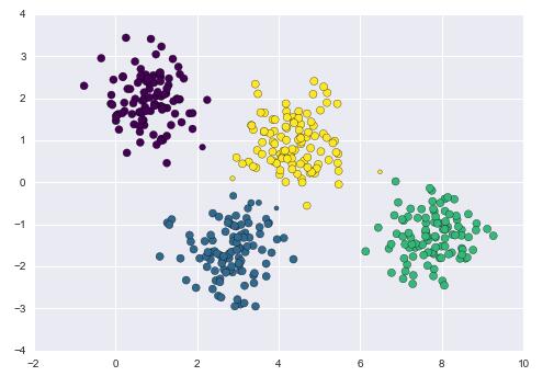 在 Python 中,我们可以利用 Scikit-Learn 的 GMM 模块中的 GMM 函数构建对应的模型对象,从而进行高斯混合模型聚类: