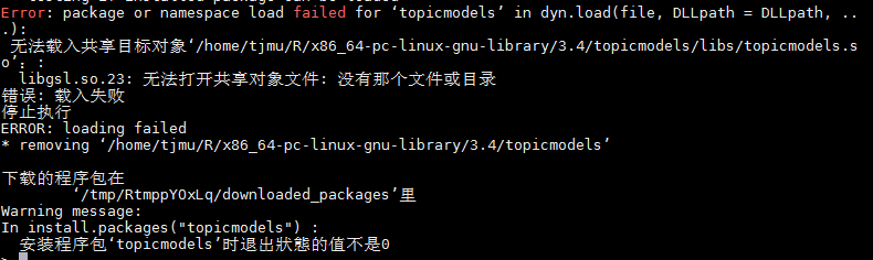 原本安装topicmodels时出现:fatal error: 'gsl/gsl_rng.h' file not found, 安装了gsl后再次安装topicmodels载入失败,怎么能够安装topicmodels呢。。