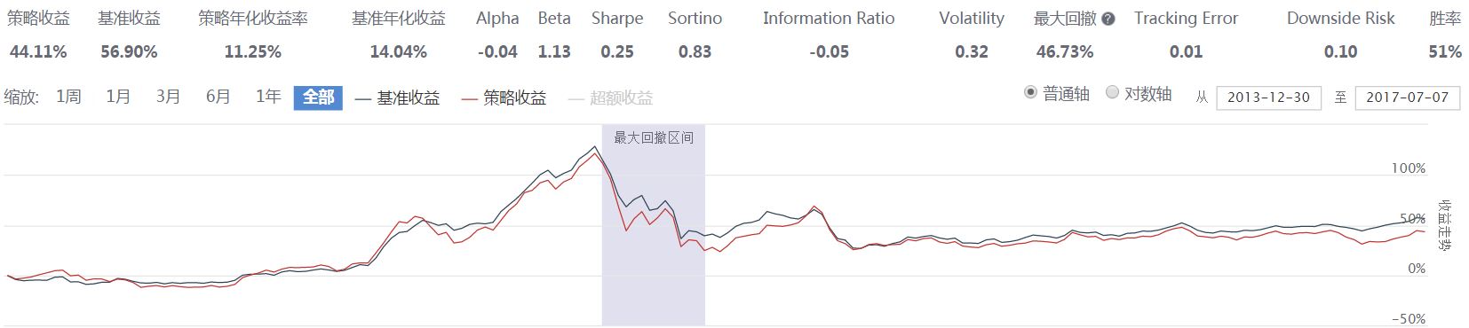 大多数人总是有这样一种感觉,在股票市场中,高波动的股票也意味这更多的交易机会,也就意味着更高的潜在收益率。那么事实是不是这样呢?我在MindGo上进行了验证。我们采用每月从沪深300成分股中筛选出波动率较低的前20只股票作为持仓,作为对比,也筛选出波动率较高的前20只股票作为持仓,每月第一个交易日调仓,而后观察选择这两种标的策略在2014年至2017年中为止的收益情况。然后得出简单实证意义上的结论,供大家思考讨论。