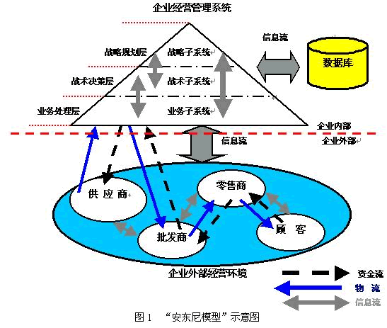 “安东尼模型”可谓是现代企业管理信息系统的开山鼻祖,很显然在“安东尼模型”中已经体现出了现代企业管理系统新理念的雏形,这与在此之前的其他管理信息系统定义的本质区别就在于它是已包含和考虑了企业内外部环境因素的相互关联和影响的管理系统,正确反映了企业内外供应链的物流、资金流、信息流的真实流向,反映了企业管理的本质。