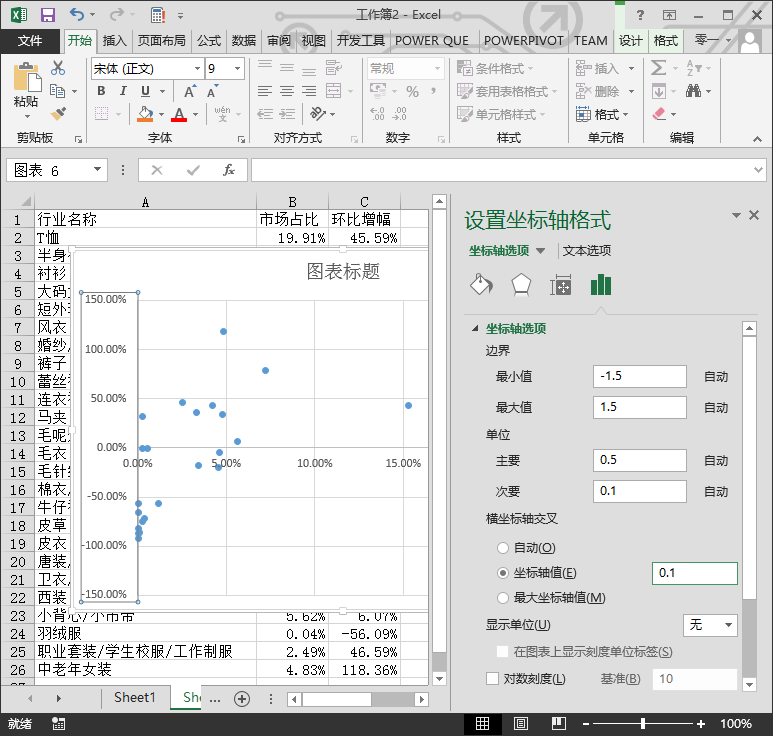 将横坐标交叉的坐标轴值设为 0.1(10%),如下图所示。