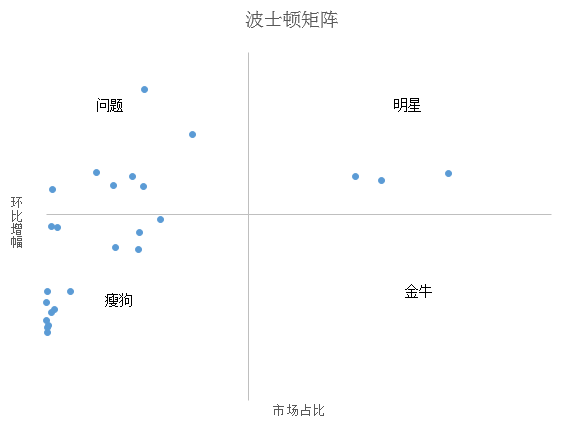 (4)瘦狗区间的产品一般是失败的爆款,也被称为“打酱油的产品” 。 可能有人会问,这里的分析不是针对产品的吗?但你这里针对的是行业。
