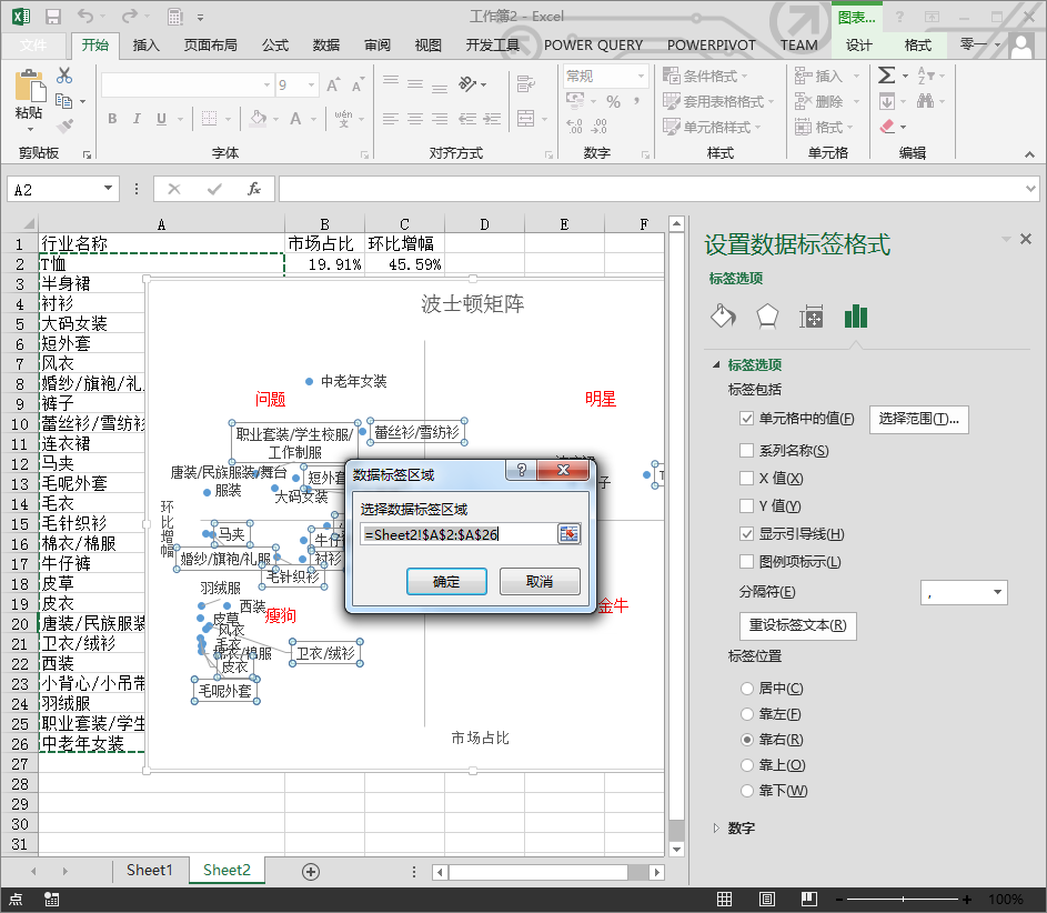 标签选择单元格中的值,设置好区域
