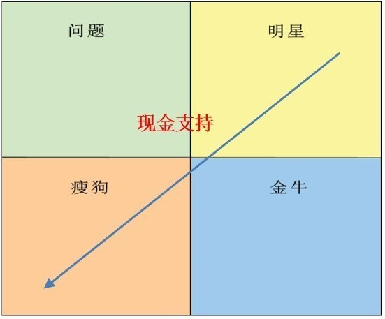这个矩阵是根据终的数据结果来分析的,那么我们不能脱离商业理解,如果增长降低了, 市场份额也降低了,除竞争加大外,是否还有其他深层次的原因呢?