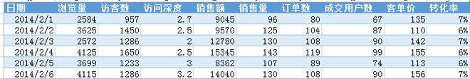 如:当天的店铺数据