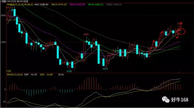 从日线图来看,沥青上周多头走的非常强势,连跌破五日均线的都没有,而价格与均线的乖离已经比较大了,那么日内而言最好能给到部分的回落之后再去布局多单,日内建议2540附近布局多单,止损2520,止盈2580。