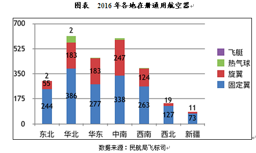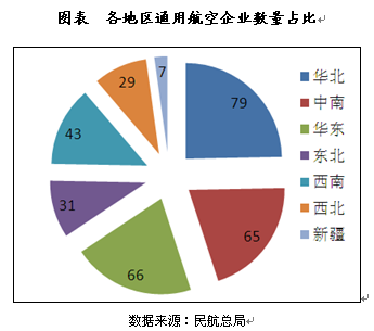 截至2016年底,获得通用航空经营许可证的通用航空企业320家,其中,华北地区79家,中南地区65家,华东地区66家,东北地区31家,西南地区43家,西北地区29家,新疆地区7家。