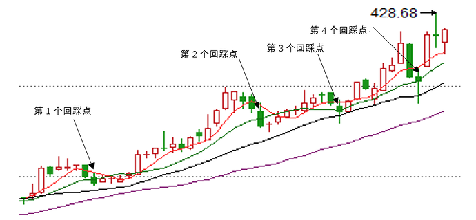- 回踩点的定义为当根K线击穿10日均线,未击穿更长周期均线,并扔满足多头排列