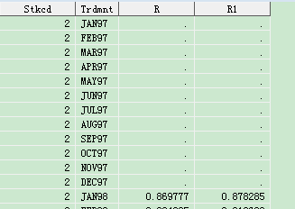 请教论坛中的高人,我想取收益率(t月)前12个月到前2个月的收益和,作为t月的控制变量,但是处理后滞后的不一致,附上我的原始数据和处理后的数据,以及我的程序,希望高人指点迷津,非常感谢