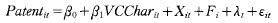 利用有VC参与的企业样本,构建如下模型检验VC特征对创新的影响: