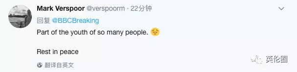 “不知道说什么好了,感觉我的部分童年也随你而逝了。安息吧,我的传奇。”