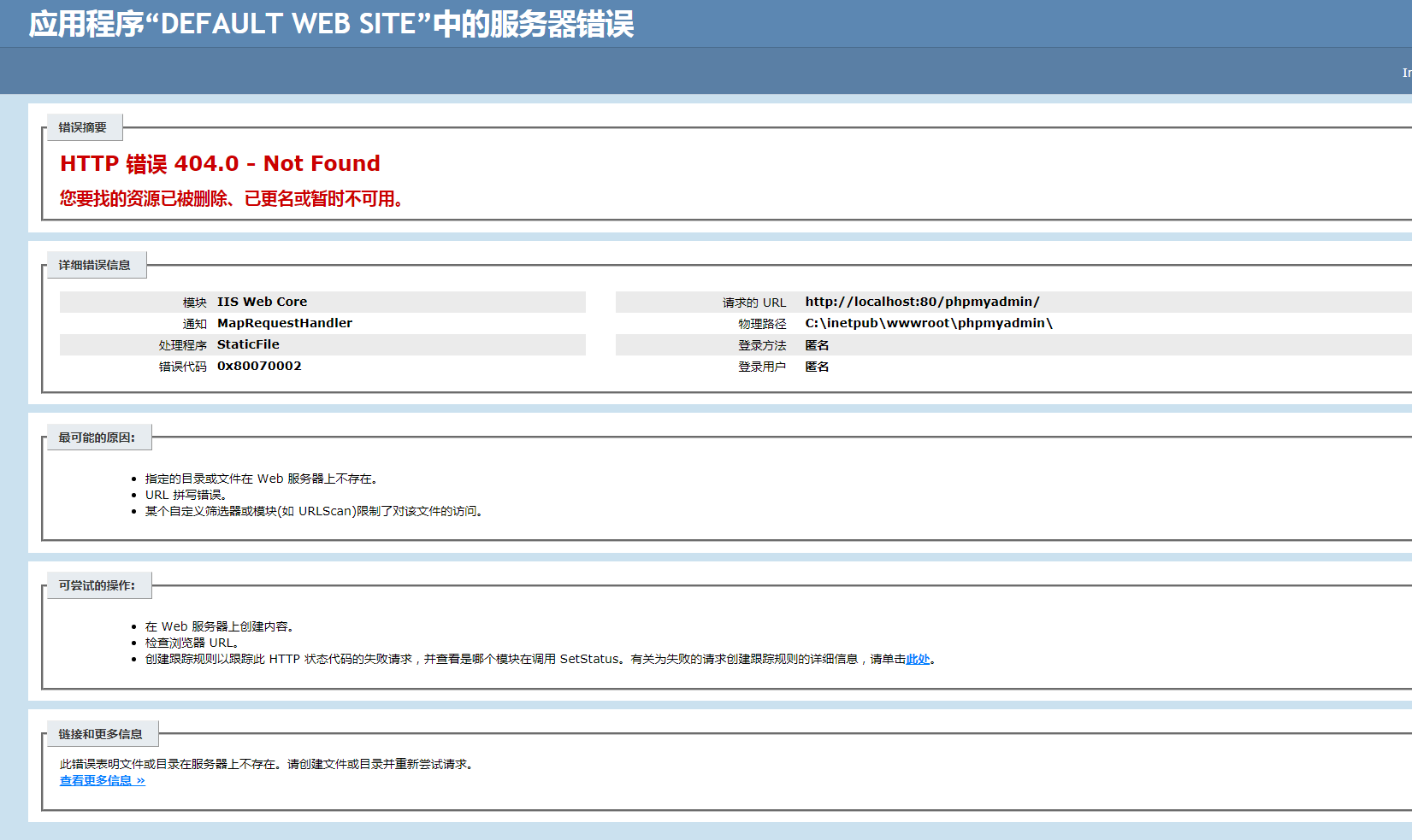 但是,我再浏览器中调取phpmyadmin还是调取不出来,如图