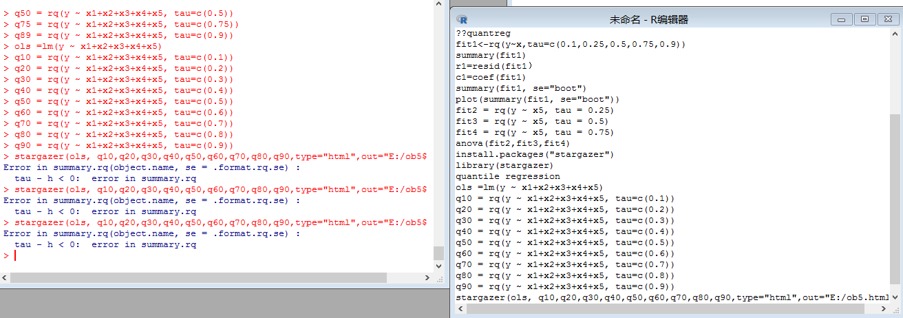 最近在用R做分位回归的东西,然而在做到F检验的时候出现了下面这种问题,,,想请教一下大神这个问题该怎么改