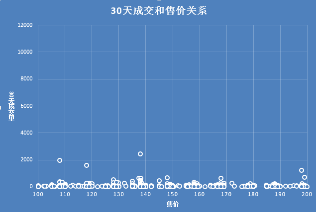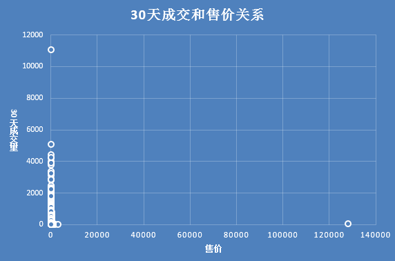 按30天成交量和价格来做散点图,得到如下的结果。