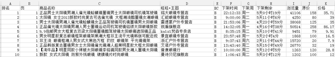 我抓取下来眼镜行业按销量排名的100页,也就是40*100=4000个宝贝的数据。数据大概长这个样子