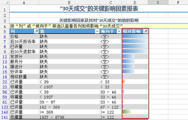 我们先看下分析关键影响因素(我这里是用的市场数据,但如果大家是拿店铺的数据,大家都懂的)