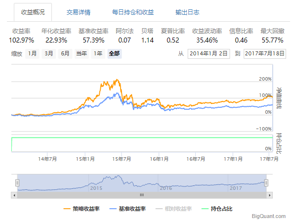 上面的例子特别有趣但不是很适用。 接下来,我们将演示如何在BigQuant中创建一个策略。
