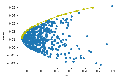 ## 计算有效前沿的收益率和风险
