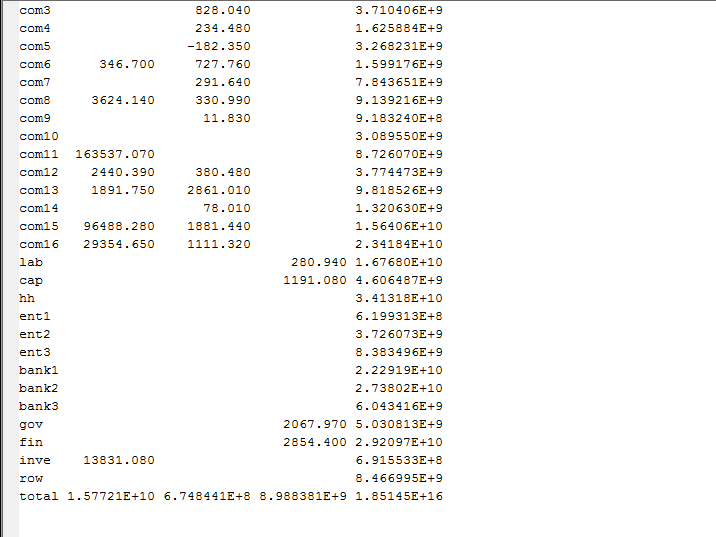 求助:按照书上的例子用GAMS调平SAM表,但结果输不出SAM表的值,程序也没有报错