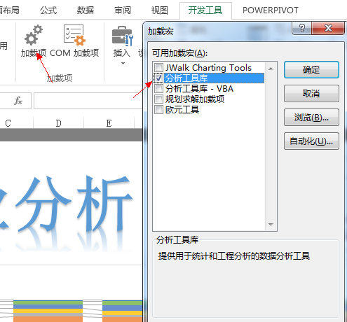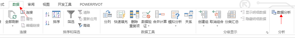 勾选分析工具库后,可以在数据选项卡中找到这个工具库