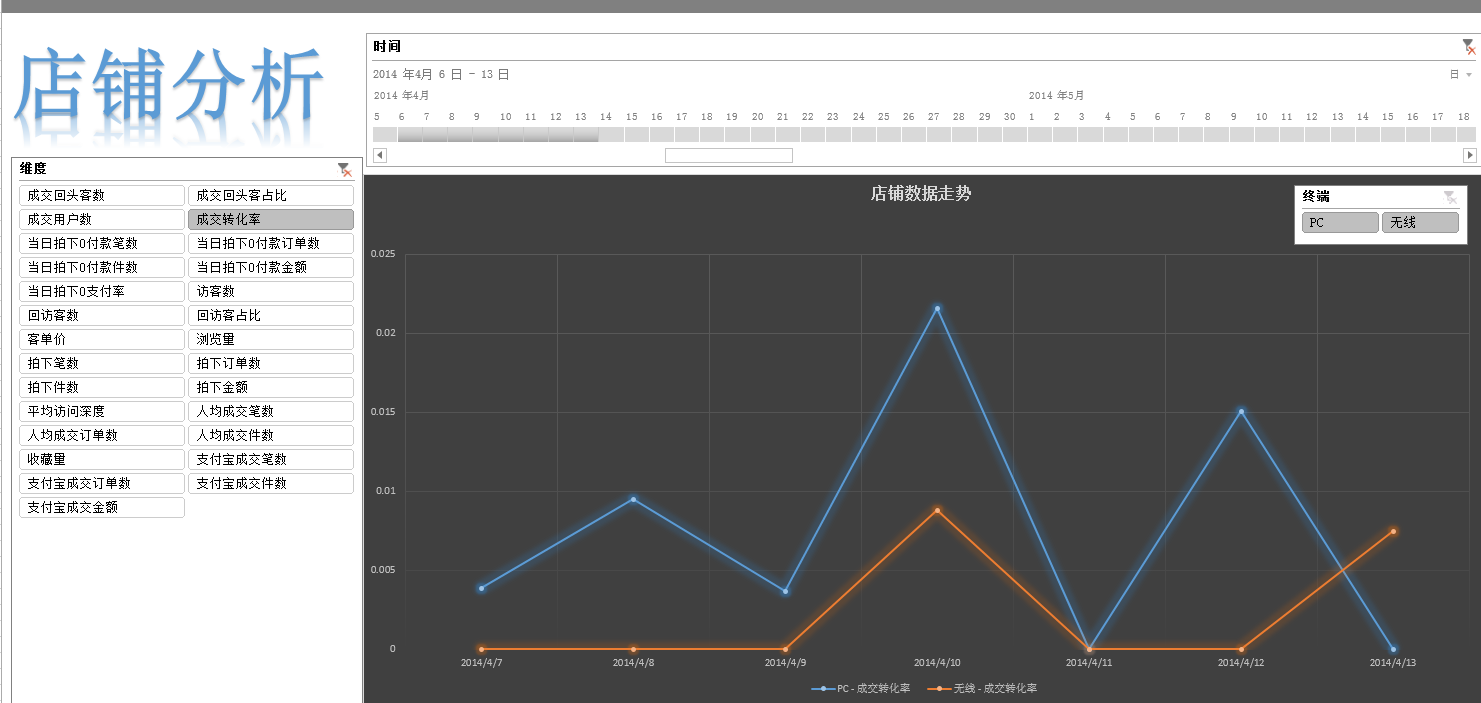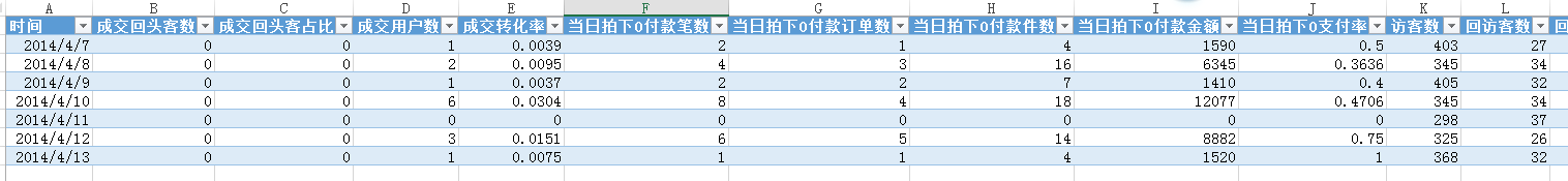 下面我们来做一份有关店铺的转化率,访问深度,等纬度进行分析。