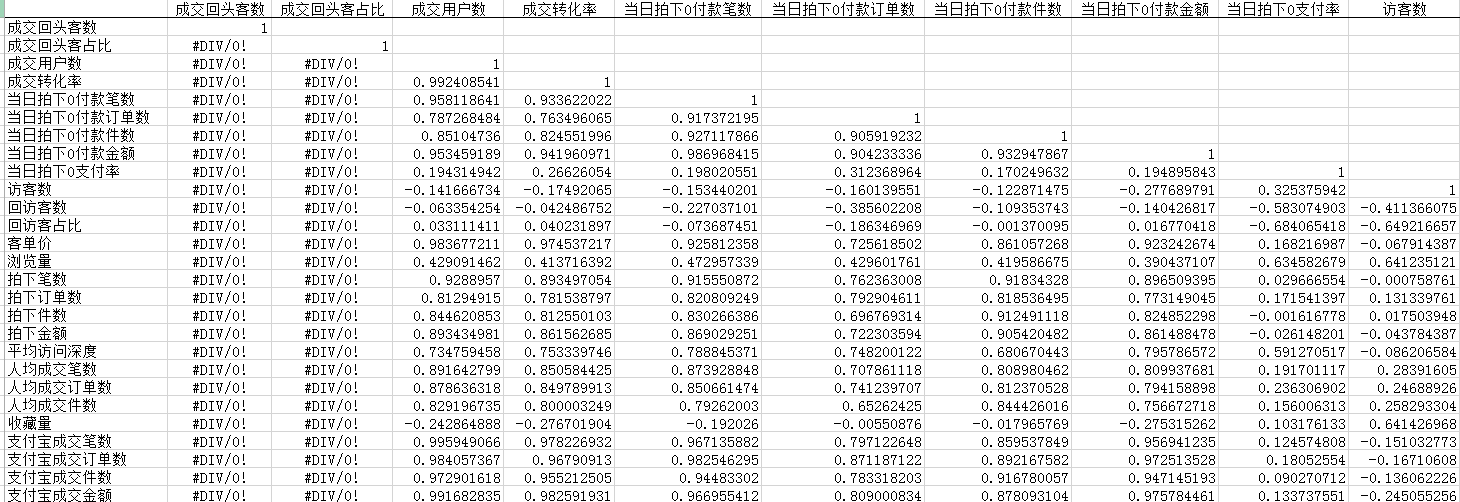 这时用到的是原始的数据结构,将数据转换成表格,工作表名:相关性源数据