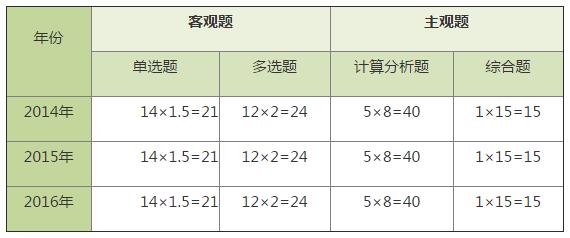 2012年开始机考以来,客观题:主观题的比重稳定在45:55。其中计算分析题占比最大,每年都是40分的分值。