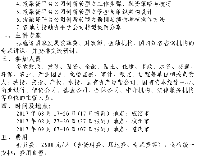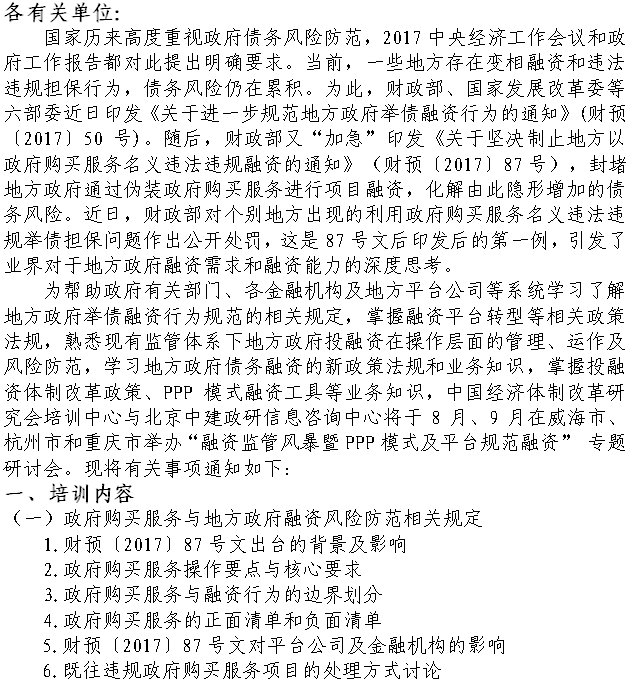 关于举办融资监管风暴暨ppp模式及平台规范融资的专题培训通知
