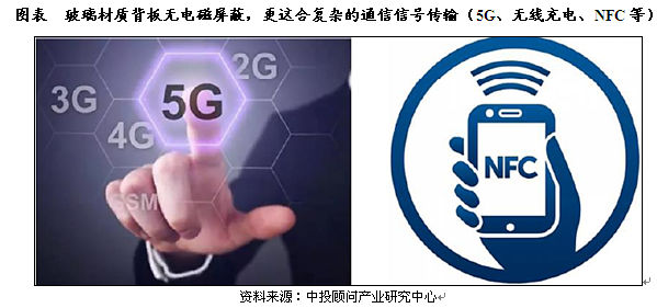 智能终端采用3D玻璃为外壳减少信号干扰。金属外壳有电磁屏蔽,从而影响4G手机的通信信号,因此需要将金属外壳分割为多段,才能保证通信质量。而随着5G时代到来,通信信号更为复杂,我们预计NFC、无线充电技术都将成为未来手机的标配,金属外壳对于信号的屏蔽将进一步凸显。