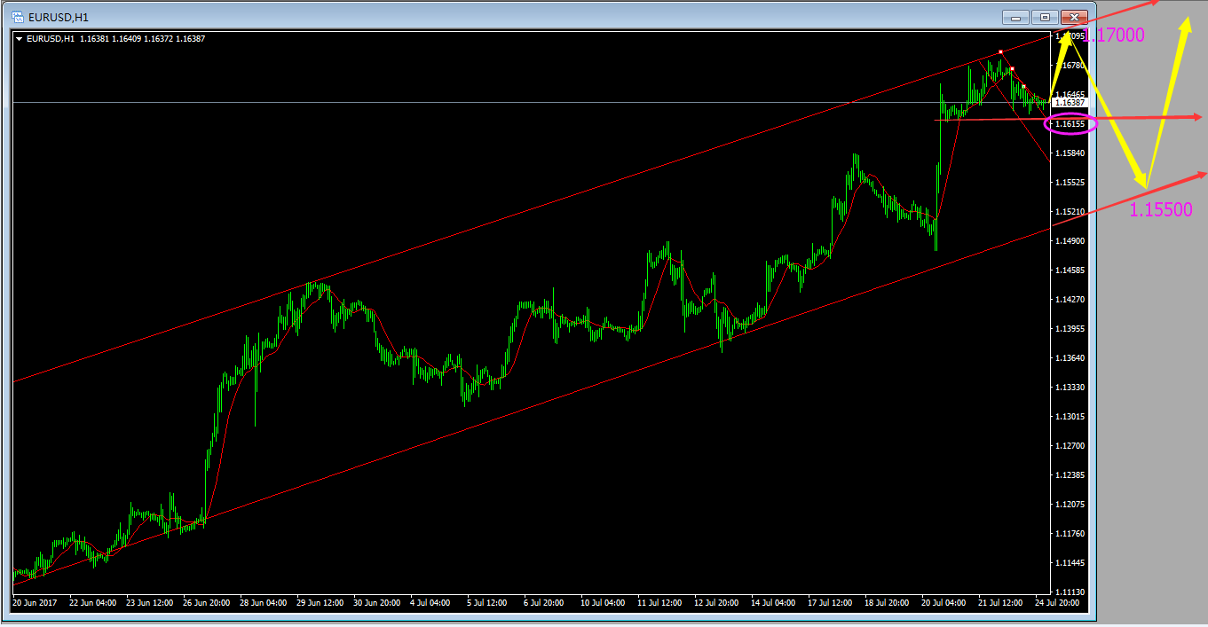 欧元现在1.16400做多上方看1.17000 止损1.16155