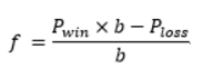 其中Pwin表示胜率,Ploss=1-Pwin,b表示赌赢了的赔率(赌赢的收益/本金)。f表示单次下注占总资金的比例。