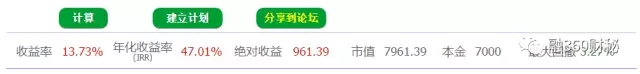 绝对收益961.39元,收益率达到13.73%。