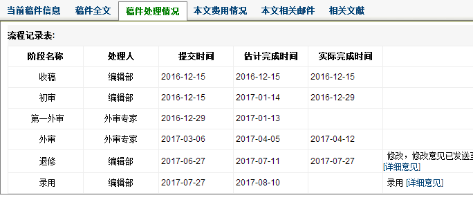 星光perfect 发表于 2018-5-28 22:43 是的,第一外审没有实际完成时间,不知道今年是什么审稿流程(我之前看别人的录用流程,这个时间有的也是空 ...