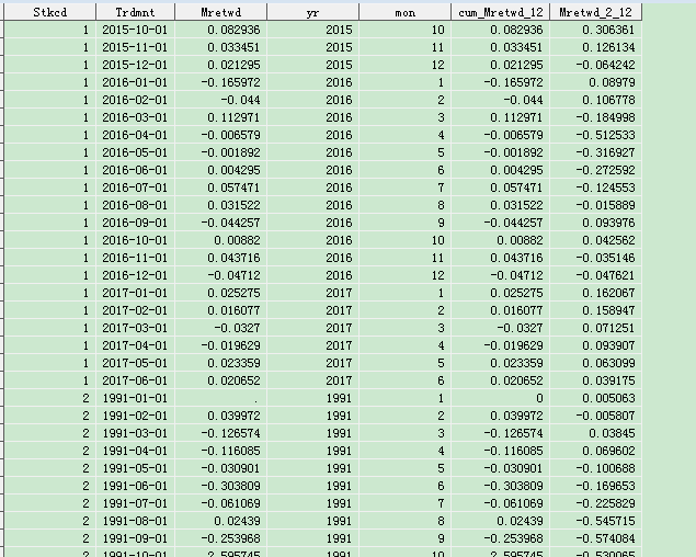 你好,非常感谢您的解答。不过这样做存在一个问题,就是第二只股票前几年的控制变量时用的是第一只股票滞后的数据。附上我自己的一个程序,存在滞后不一致的问题,麻烦请您指点,非常感谢