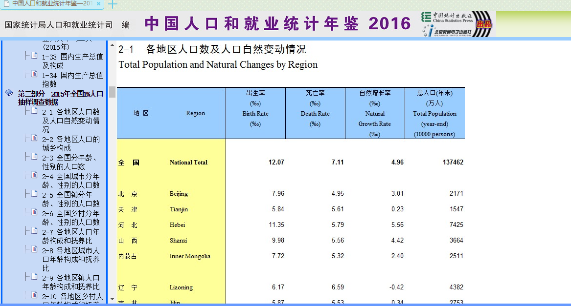 名称:中国人口和就业统计年鉴2016(光盘版)