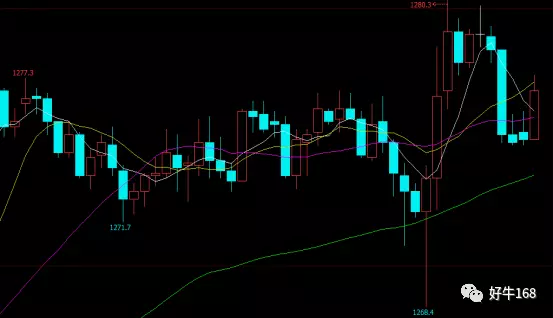 从小时图来看,昨日价格一度回踩较深,同时拉升起来速度非常快。考虑到周五的数据,金价上涨动能短时间不会太充足,这也就造成价格突破前高1277附近后,拉倒1280附近就受到压制的原因所在。同时金价长线依旧看涨,但短时间预计又将展开调整行情。建议今日日内站上1280之前可以在1280附近做空,止损于1282附近,止盈于1272附近。同时价格触及1272附近可以考虑做多,止损于1270附近,止盈于1280附近。尽量以多单为主,如果下跌比较急,跌完再多都可以。