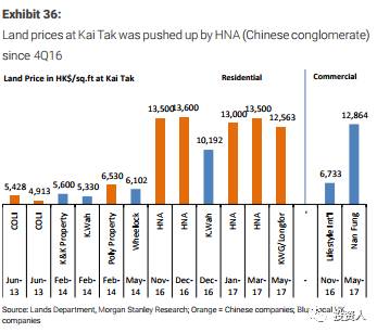 这些天量资金不仅仅买走了香港最繁华地带的酒店、办公大楼和广场,还在2016年左右进行了一场风格切换,直接将投资对象瞄准了居民住宅。在香港地产竞标中,内地资金作风激进,出手阔绰。例如,海航集团在拿下香港地的开发住宅区时给出了高于2014年土地最开始被拍卖时一倍的价钱。而从2014年到2016年,香港楼市不过才涨了20%。
