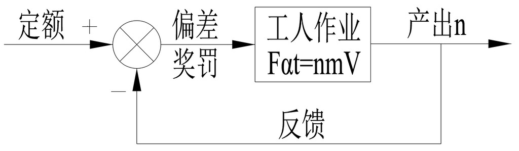 从系统思考的角度说,定额是负反馈模型,定额的数量是系统的目标,工人通过广义动量定理产生成果n,成果通过检查返回到输入定额,然后通过定额-成果就可以获得这个工人与定额的偏差。如果偏差大于0,即工人没有完成定额,那么控制策略就是惩罚工人,以期他可以调整自己的行为来完成偏差。如果偏差小于0,即工人超额完成定额,那么控制策略就是奖励,以期他可以保持自己的行为(如图6-50所示)。