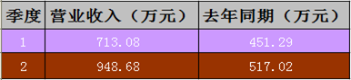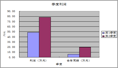 通过上表图可以看出,无论是今年,还是去年第1、2两个季度,企业营业收入总体都是增长趋势,去年增长幅度为14.55%,尤其是今年第二季与第一季度的营业收入环比增幅为33.04%。