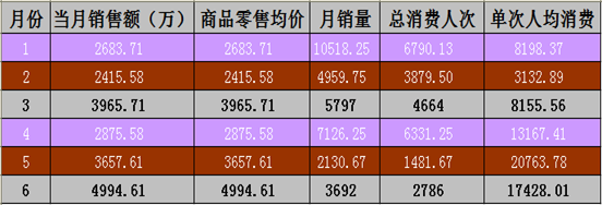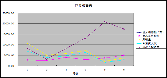 从上述图表可以看出,体育产品销售类企业与其他其他的不同特点,即销售额从2月份开始到5月份一路增长,5月到6月出现小幅下滑。与32家体育服务业企业总体的波动性呈现出不同的走势。其中缘由需进一步分析(由于没有体育产品具体产品的销售数据,本研究不能下结论)。