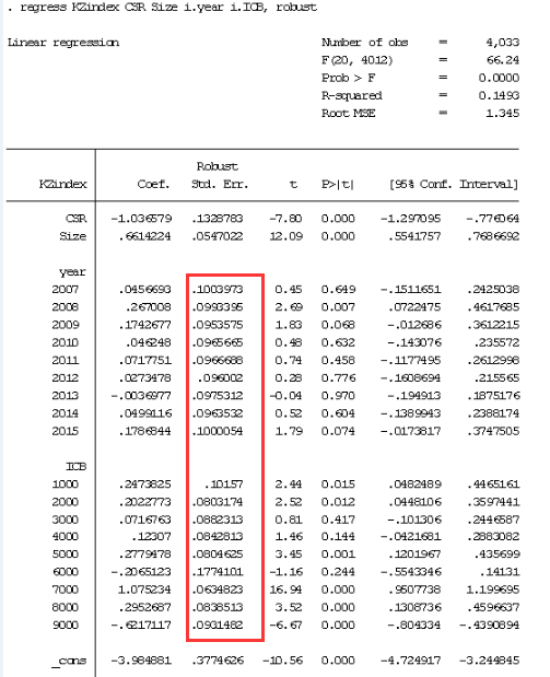 也是晴天 发表于 2017-8-8 13:45 分行业回归就是说,加入你的样本共有10个行业,则回归出来的系数一共有10个,属于这个行业的所有公司的回 ...