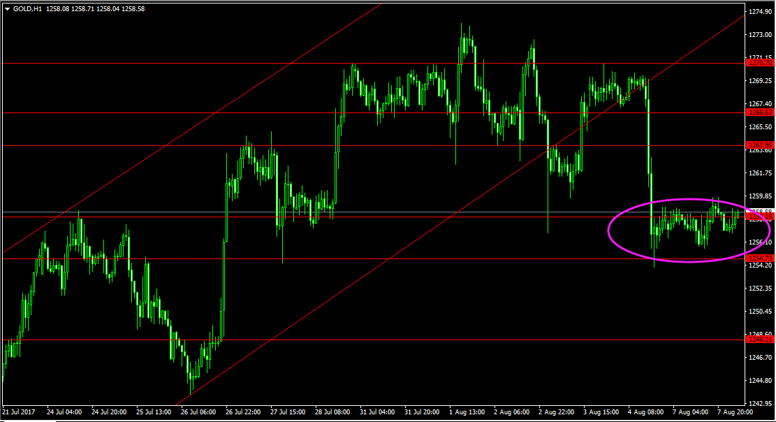 从昨天的行情的我们可以看出,黄金在周五的大非农行情之后,选择了一个小区间的蛰伏,我们经常说一段大行情之后必会有一个不小的调整,那么这个调整之后行情是选择上冲还是继续下行呢!从1小时图可以看到,昨天的走势基本是在我们前面所说的箱体的下轨1258一线下方震荡,偶尔上冲一下就又立马回调,今早又再次冲击1258一线上方,说明多头空在这一线比较焦灼,竞争比较激烈,可能这一线的夺取就直接决定了接下来一段时间的行情是大涨或者大跌。就我个人而言一直是偏向多头,毕竟我认为的1254一线强支撑位一直没有真正的跌破,即使大非农当天的疯狂下跌也只是浅尝则止。那么今天只要能成功站上1260我觉得上行就比较稳定,上方直接看1266一线上方第一压力为,1258作为这一多单的止损线。一旦行情超出预期下行到了1254下,果断空单进场,下方1248一线第一支撑位就是盈利点。