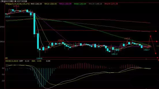从三十分钟图来看,随着上周五大幅下跌之后,黄金一直选择在底部盘整,而三十分钟级别当中我们可以看到几个关键点位,分别是上周五盘中1270附近经过了部分的调整,而此点位也就将成为后期的压力位;另一个则是周五的低点。早间建议:价格反抽至1267一线即可布局空单,止损带在1270一线,止盈1262。1260附近布局多单,止损1257,止盈1267。