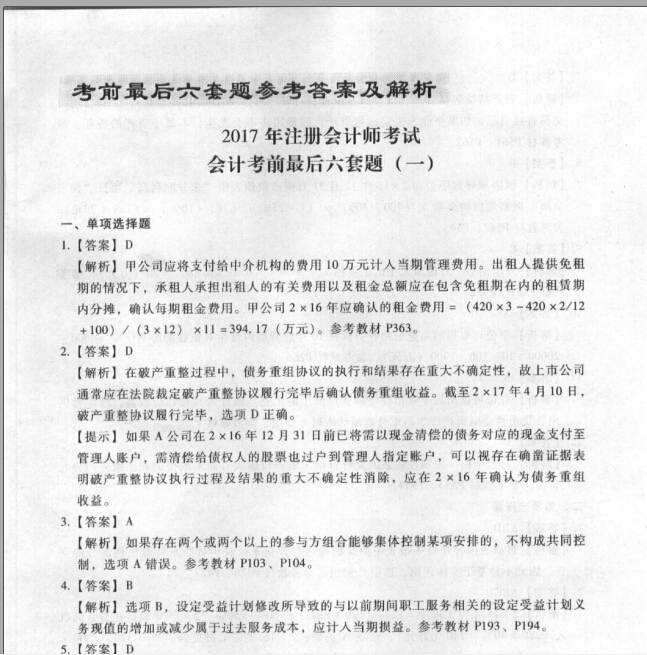 【深度资源】2017CPA冲刺卷+20年真题+高频考点整理+新版教材