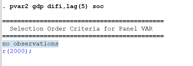 小小倩dd 发表于 2017-9-6 14:34 我发现其实用命令可以选出滞后阶数,可以在论坛上查一下,这样知道阶数就可以不用soc了,这样基本能跑出来 ...