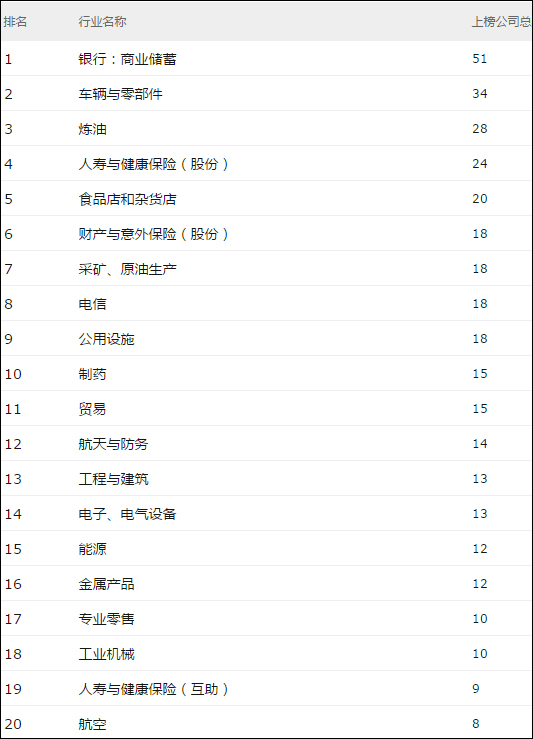 从其他上榜国家看,美国今年有132家公司,日本有51家。