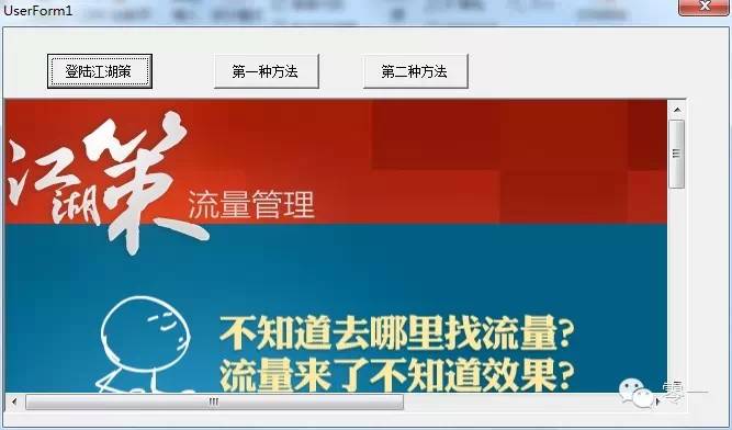 不过,像生e经、生意参谋等这类站内工具,都需要登录淘宝后才能响应请求并返回数据,在跑这个代码前还需要做一个登录江湖策的模块,类似下图,点击一下Button1,然后调用的浏览器就打开江湖策,然后登录后,再运行上面的代码才会有结果。